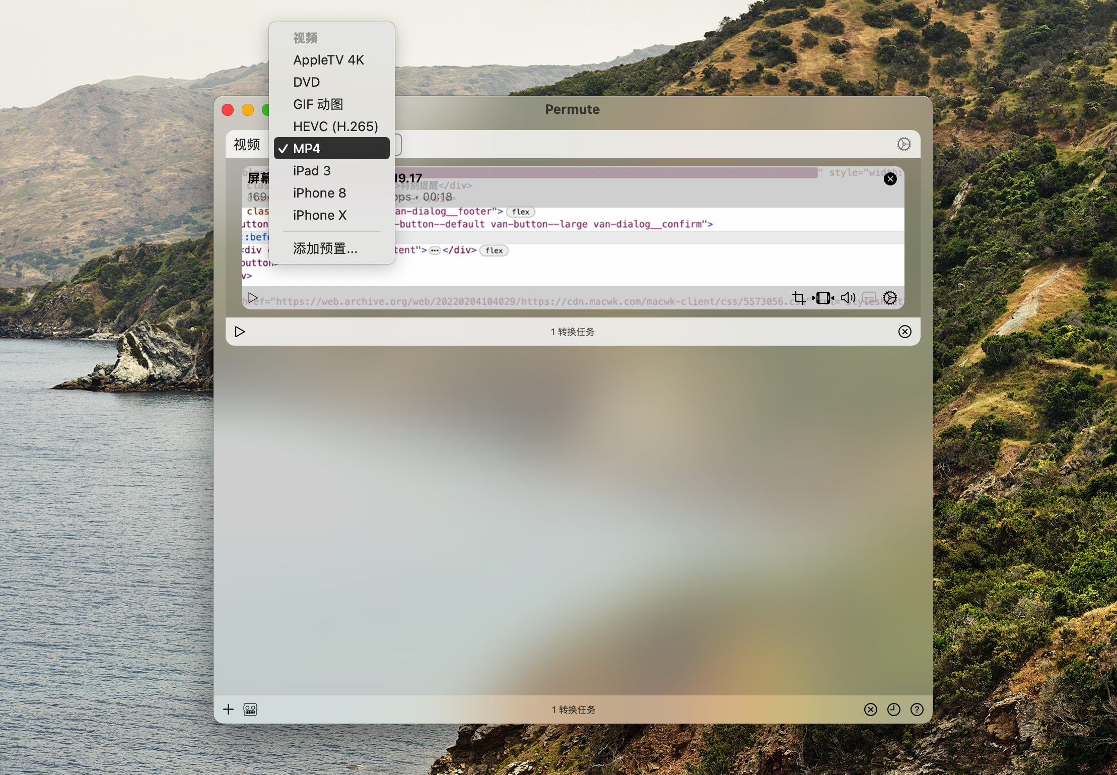 Permute 能轻松将的mac上的媒体文件转换为各种不同的格式。支持几乎所有的格式,并有大量的设备预设可供选择。