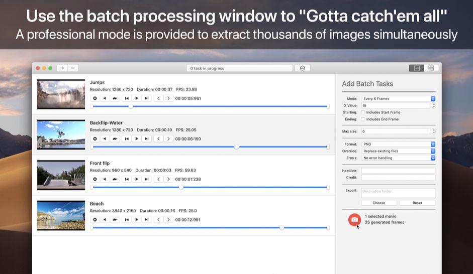 SnapMotion旨在支持像4K电影这样的大型视频文件并在必要时从媒体中提取每一帧图像。此应用可以播放由macOS原生支持的所有视频格式。而且,它还可以将图像导出为行业标准格式,例如PNG、JPEG、TIFF和HEIC。